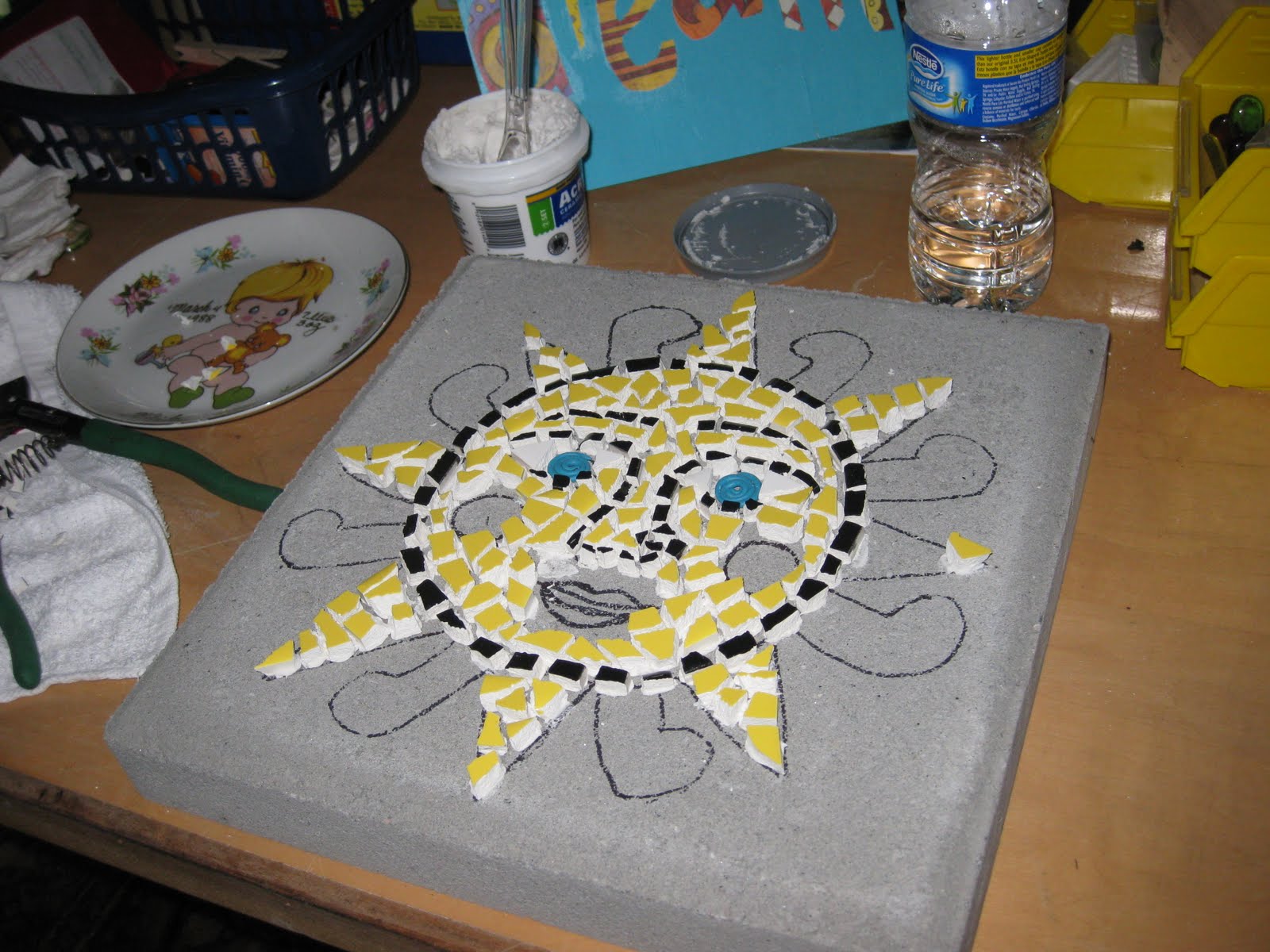 and I began the stepping stone inventory collection so I'll have some stuff in the boutique for sale. This is my first tile piece in ages and ages. It most likely will be a gift for someone. So much for inventory! It felt AWESOME to mosaic again. I was walking on clouds all week. :-) (This pattern came from Chrissie Grace's book